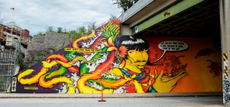 Featured photo: Brandon Sadler’s 2015 mural, Abhaya Brings Teachings of Love